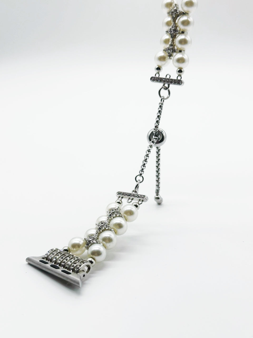 The PearlGlam Apple Watch Strap redefines wristwear elegance. Strung with lustrous faux pearls and accented by sparkling crystal - encrusted details, it blends classic sophistication with modern flair. The adjustable chain design ensures a perfect fit, while the secure clasp keeps your Apple Watch steady. Ideal for elevating everyday looks or adding a touch of luxury to special occasions, this strap turns your smartwatch into a chic fashion statement, merging timeless beauty with tech - savvy style.